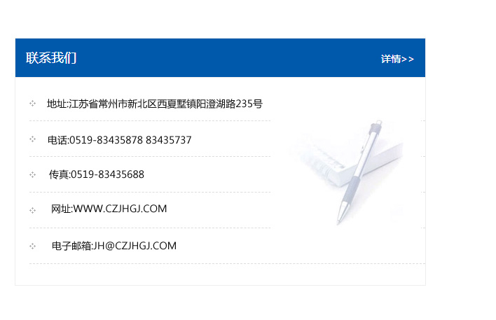傳真:0519-83435688    郵編:213135    網址:WWW.czjhgj_com.ynainiduo.com    電子郵箱:JH@czjhgj_com.ynainiduo.com